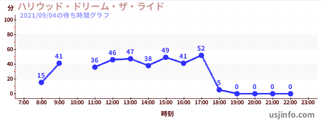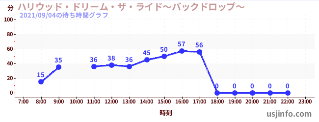• ハリウッド・ドリーム・ザ・ライド〜バックドロップ〜$B$N(B2021年09月04日の待ち時間