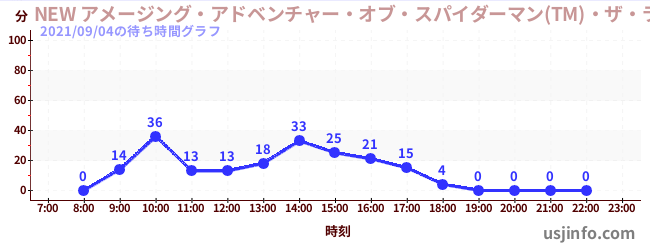 • NEW アメージング・アドベンチャー・オブ・スパイダーマン(TM)・ザ・ライド 4K3D$B$N(B2021年09月04日の待ち時間