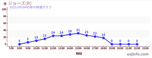 • ジョーズ(R)$B$N(B2021年09月04日の待ち時間