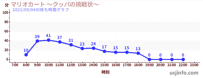 • マリオカート ~クッパの挑戦状~$B$N(B2021年09月04日の待ち時間