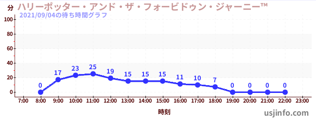 • ハリーポッター・アンド・ザ・フォービドゥン・ジャーニー™$B$N(B2021年09月04日の待ち時間