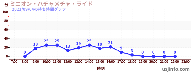 • ミニオン・ハチャメチャ・ライド$B$N(B2021年09月04日の待ち時間