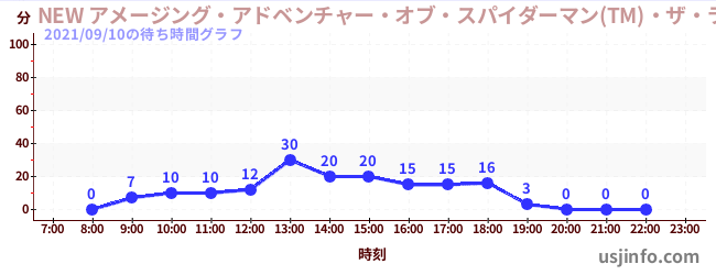 • NEW アメージング・アドベンチャー・オブ・スパイダーマン(TM)・ザ・ライド 4K3D$B$N(B2021年09月10日の待ち時間