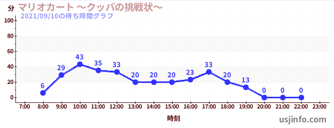 • マリオカート ~クッパの挑戦状~$B$N(B2021年09月10日の待ち時間