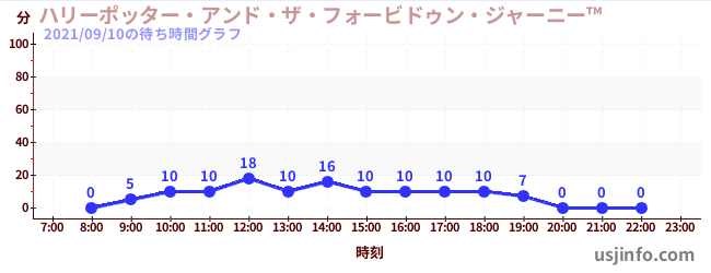 • ハリーポッター・アンド・ザ・フォービドゥン・ジャーニー™$B$N(B2021年09月10日の待ち時間