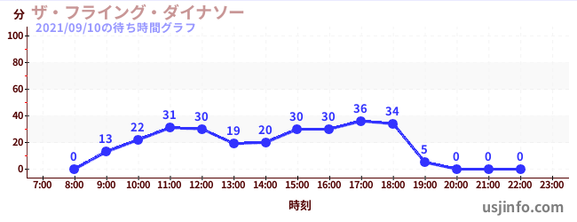 • ザ・フライング・ダイナソー$B$N(B2021年09月10日の待ち時間