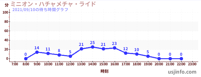 • ミニオン・ハチャメチャ・ライド$B$N(B2021年09月10日の待ち時間