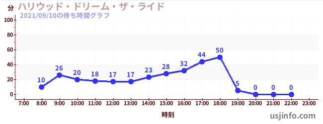 • ハリウッド・ドリーム・ザ・ライド〜バックドロップ〜$B$N(B2021年09月10日の待ち時間
