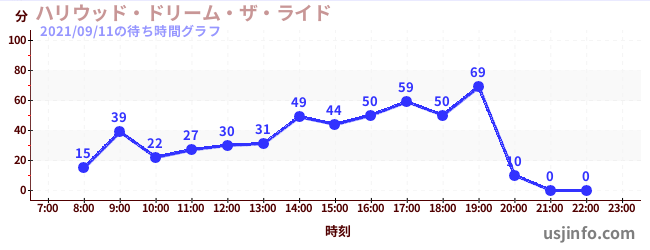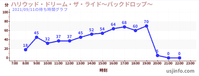 • ハリウッド・ドリーム・ザ・ライド〜バックドロップ〜$B$N(B2021年09月11日の待ち時間