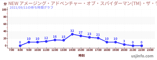 • NEW アメージング・アドベンチャー・オブ・スパイダーマン(TM)・ザ・ライド 4K3D$B$N(B2021年09月11日の待ち時間