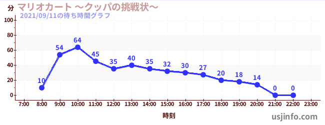 • マリオカート ~クッパの挑戦状~$B$N(B2021年09月11日の待ち時間