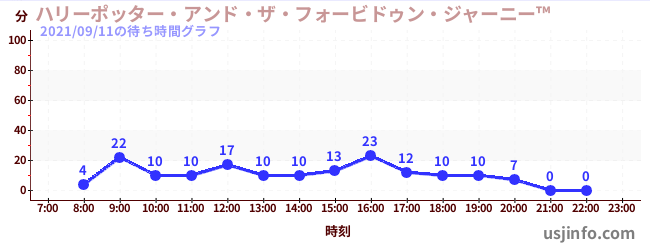 • ハリーポッター・アンド・ザ・フォービドゥン・ジャーニー™$B$N(B2021年09月11日の待ち時間