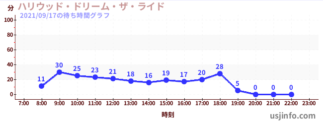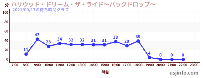 • ハリウッド・ドリーム・ザ・ライド〜バックドロップ〜$B$N(B2021年09月17日の待ち時間