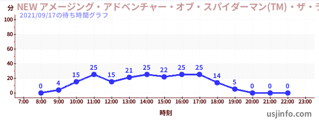 • NEW アメージング・アドベンチャー・オブ・スパイダーマン(TM)・ザ・ライド 4K3D$B$N(B2021年09月17日の待ち時間