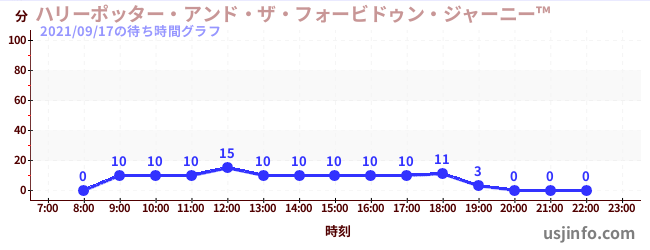 • ハリーポッター・アンド・ザ・フォービドゥン・ジャーニー™$B$N(B2021年09月17日の待ち時間