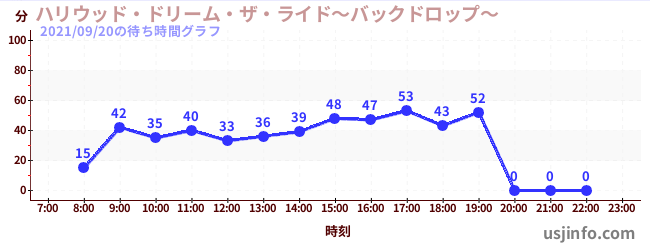 • ハリウッド・ドリーム・ザ・ライド〜バックドロップ〜$B$N(B2021年09月20日の待ち時間