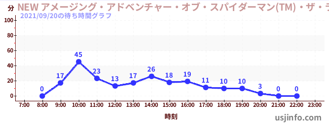 • NEW アメージング・アドベンチャー・オブ・スパイダーマン(TM)・ザ・ライド 4K3D$B$N(B2021年09月20日の待ち時間