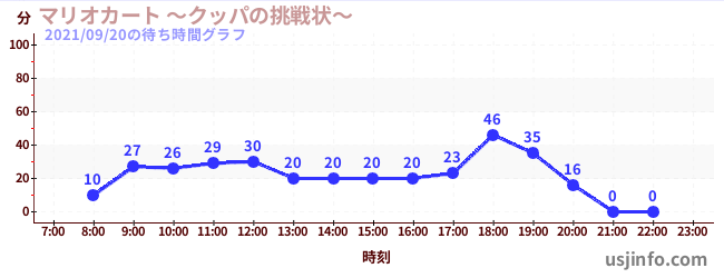 • マリオカート ~クッパの挑戦状~$B$N(B2021年09月20日の待ち時間
