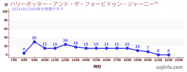 • ハリーポッター・アンド・ザ・フォービドゥン・ジャーニー™$B$N(B2021年09月20日の待ち時間