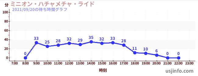 • ミニオン・ハチャメチャ・ライド$B$N(B2021年09月20日の待ち時間