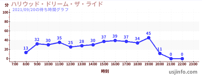 • ハリウッド・ドリーム・ザ・ライド$B$N(B2021年09月20日の待ち時間
