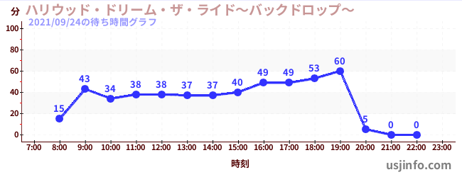 • ハリウッド・ドリーム・ザ・ライド〜バックドロップ〜$B$N(B2021年09月24日の待ち時間