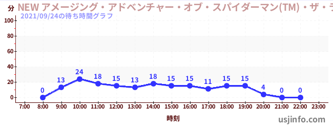 • NEW アメージング・アドベンチャー・オブ・スパイダーマン(TM)・ザ・ライド 4K3D$B$N(B2021年09月24日の待ち時間