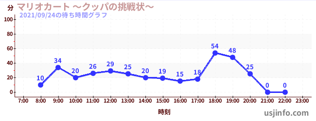 • マリオカート ~クッパの挑戦状~$B$N(B2021年09月24日の待ち時間