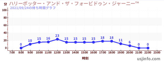 • ハリーポッター・アンド・ザ・フォービドゥン・ジャーニー™$B$N(B2021年09月24日の待ち時間