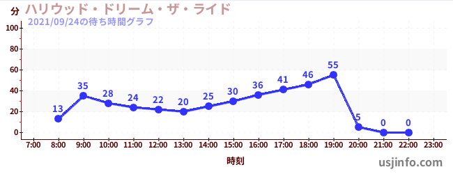 • ハリウッド・ドリーム・ザ・ライド$B$N(B2021年09月24日の待ち時間