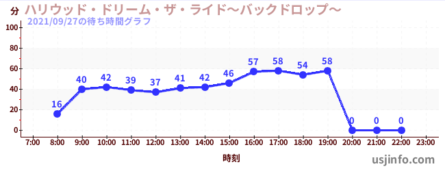 • ハリウッド・ドリーム・ザ・ライド〜バックドロップ〜$B$N(B2021年09月27日の待ち時間