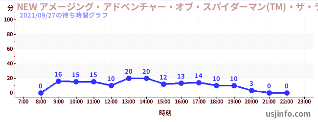 • NEW アメージング・アドベンチャー・オブ・スパイダーマン(TM)・ザ・ライド 4K3D$B$N(B2021年09月27日の待ち時間