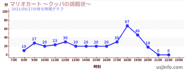 • マリオカート ~クッパの挑戦状~$B$N(B2021年09月27日の待ち時間