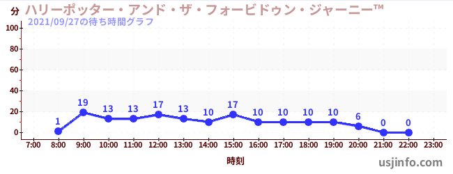• ハリーポッター・アンド・ザ・フォービドゥン・ジャーニー™$B$N(B2021年09月27日の待ち時間