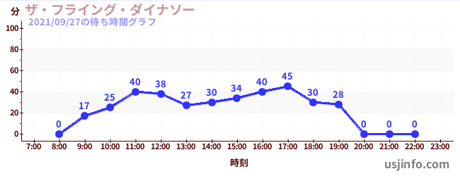• ザ・フライング・ダイナソー$B$N(B2021年09月27日の待ち時間