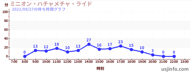 • ミニオン・ハチャメチャ・ライド$B$N(B2021年09月27日の待ち時間