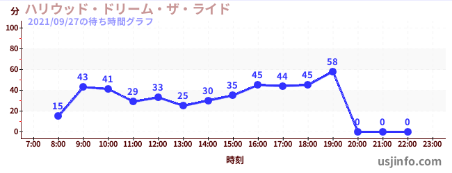 • ハリウッド・ドリーム・ザ・ライド$B$N(B2021年09月27日の待ち時間