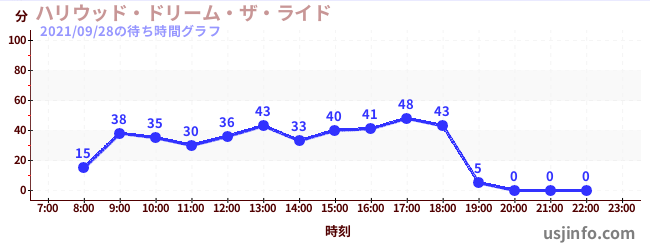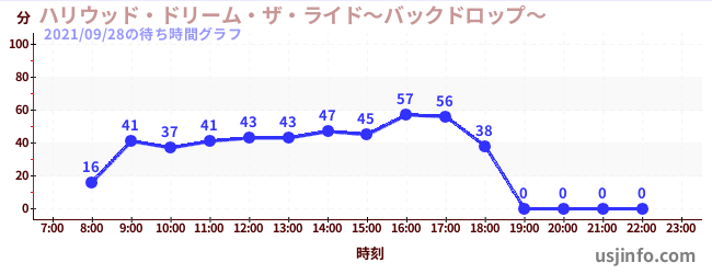 • ハリウッド・ドリーム・ザ・ライド〜バックドロップ〜$B$N(B2021年09月28日の待ち時間