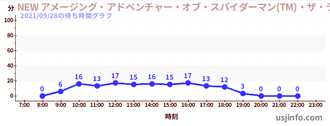 • NEW アメージング・アドベンチャー・オブ・スパイダーマン(TM)・ザ・ライド 4K3D$B$N(B2021年09月28日の待ち時間