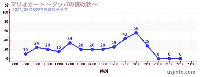• マリオカート ~クッパの挑戦状~$B$N(B2021年09月28日の待ち時間