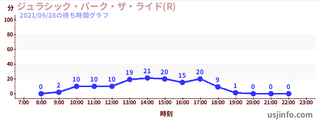 • ジュラシック・パーク・ザ・ライド(R)$B$N(B2021年09月28日の待ち時間