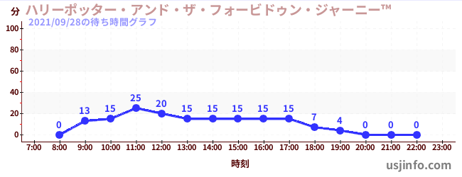 • ハリーポッター・アンド・ザ・フォービドゥン・ジャーニー™$B$N(B2021年09月28日の待ち時間