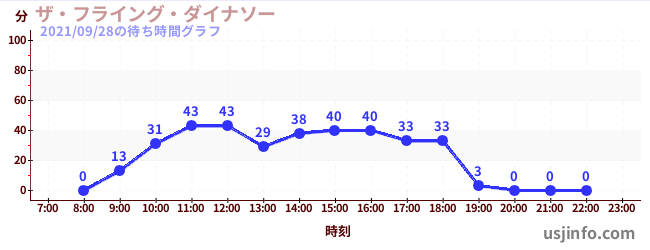 • ザ・フライング・ダイナソー$B$N(B2021年09月28日の待ち時間