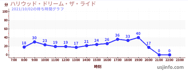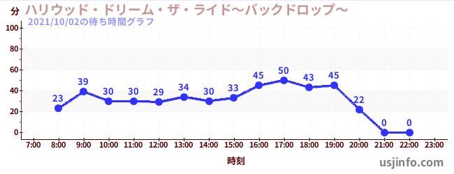 • ハリウッド・ドリーム・ザ・ライド〜バックドロップ〜$B$N(B2021年10月02日の待ち時間