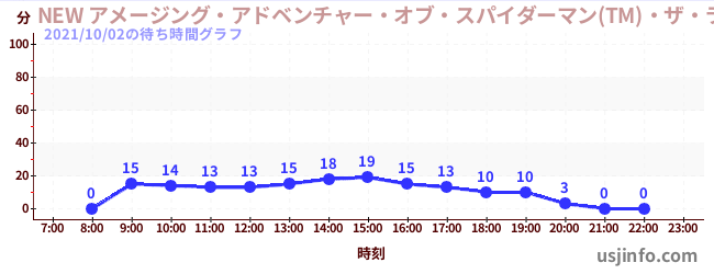 • NEW アメージング・アドベンチャー・オブ・スパイダーマン(TM)・ザ・ライド 4K3D$B$N(B2021年10月02日の待ち時間