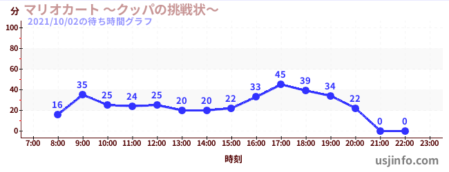 • マリオカート ~クッパの挑戦状~$B$N(B2021年10月02日の待ち時間