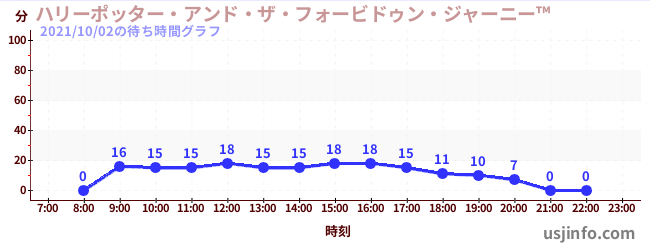• ハリーポッター・アンド・ザ・フォービドゥン・ジャーニー™$B$N(B2021年10月02日の待ち時間