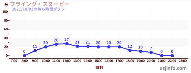 • フライング・スヌーピー$B$N(B2021年10月03日の待ち時間