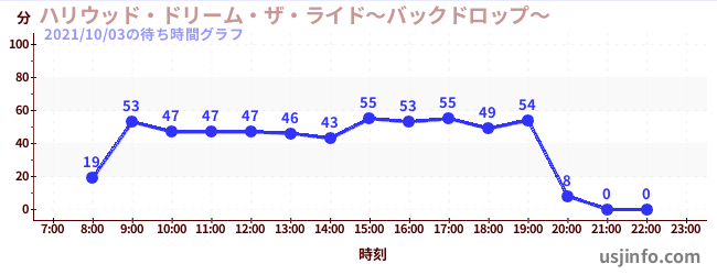 • ハリウッド・ドリーム・ザ・ライド〜バックドロップ〜$B$N(B2021年10月03日の待ち時間