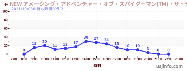 • NEW アメージング・アドベンチャー・オブ・スパイダーマン(TM)・ザ・ライド 4K3D$B$N(B2021年10月03日の待ち時間
